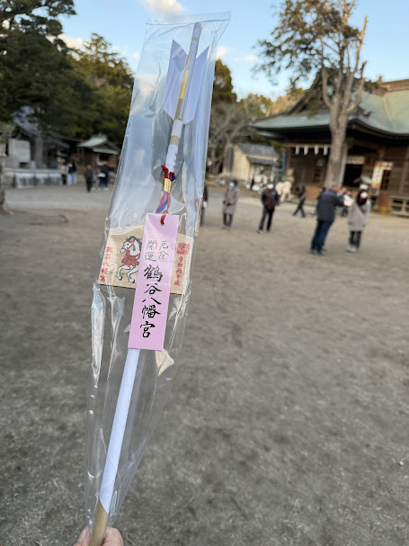 今年の元旦は暖かく風もない 本当に穏やかな正月 このまま なんでもうまく、いく午年になってほしい一!! 午後 鶴ケ谷八幡宮にお参り 宮司様にご挨拶 破魔矢(はまや)を買う 破魔矢のいわれは 魔を破り災いを払う縁起物であり、お正月の飾りや初節句、新築時などに授与され、「幸福を射止める」という意味も持ちます。破魔矢は、神棚や床の間、玄関などの高い場所に「羽(矢羽根)を上、矢尻を下」に向けて飾るものだそうだ