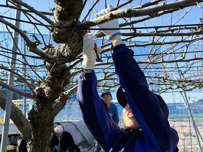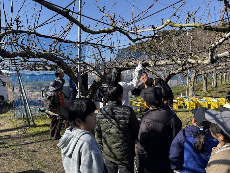 九重小学校3年 4年生 梨剪定体験