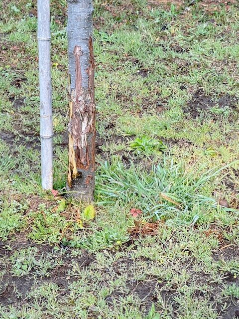 ウサギの仕業か 防災もう防風網 張る前にやられた 仕方なくトタンを巻いて防御